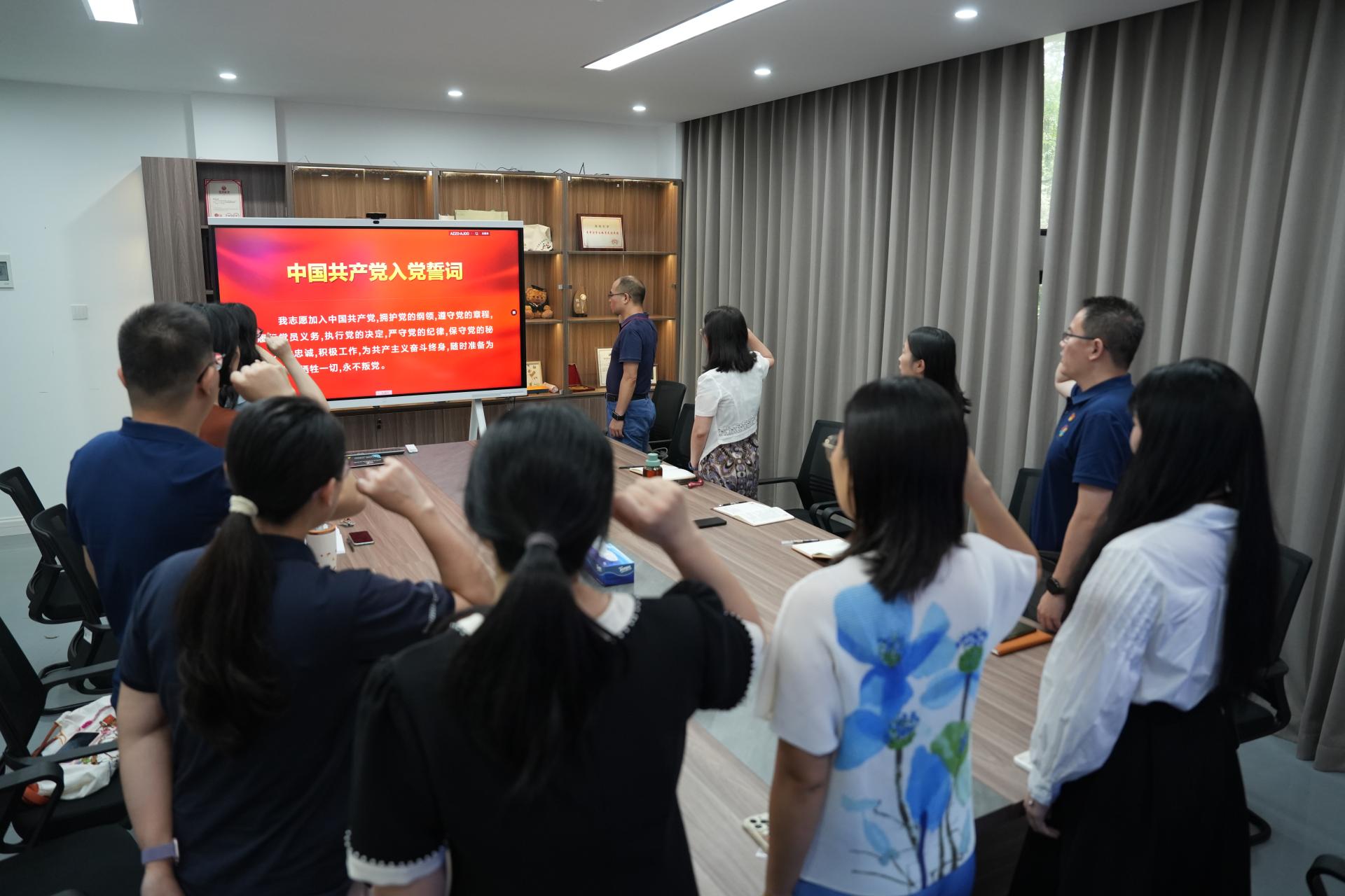 活动以重温入党誓词拉开序幕。在潘燕春院长的带领下,全体党员庄严肃立,面对鲜红党旗高举右拳,铿锵誓言再次点燃为党育人、为国育才的责任担当。