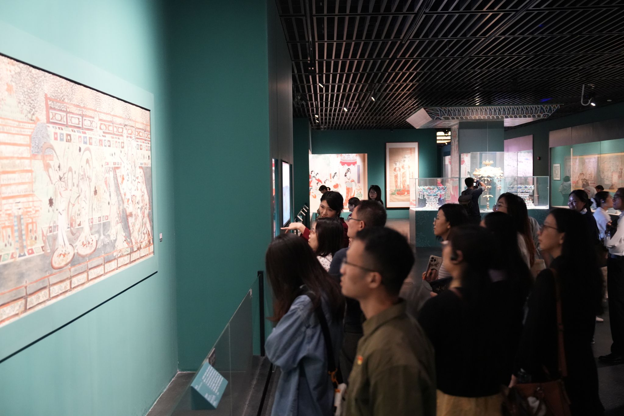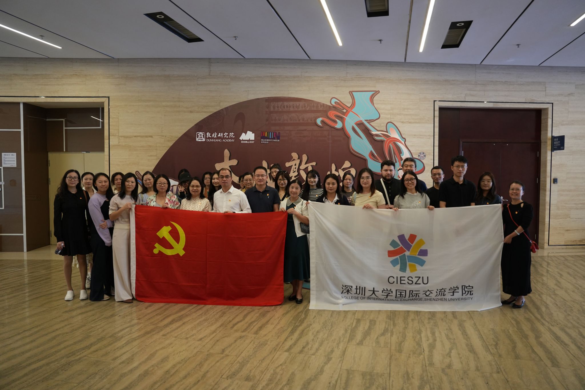 活动首站来到南山博物馆。党员教师们重点参观了正在举办的《大成敦煌——敦煌文化艺术大展》。展览以丰富的文物珍品、精美的壁画临摹以及数字复原洞窟,生动展现了敦煌艺术瑰宝的璀璨辉煌与中华优秀传统文化的博大精深。