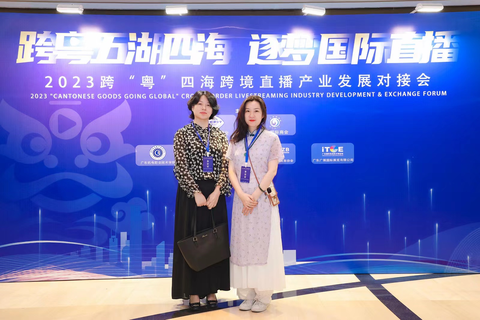 2023年6月20日,深圳大学国际交流学院陈默和李峰玲代表国际学生发展中心受邀参加了广东省贸促会主办的2023年跨“粤”四海跨境直播产业发展对接大会。会议邀请相关政府机构代表、商协会代表、高校代表、企业代表出席,共同探讨跨境直播电商发展方向和机遇,分享跨境直播出海新趋势、新生态、新模式、促进跨境主播人才供需对接。学院2021年成立国际学生发展中心,专门组织、开展和指导深大来华留学生创新、创业、就业、实践、培训和指导活动。