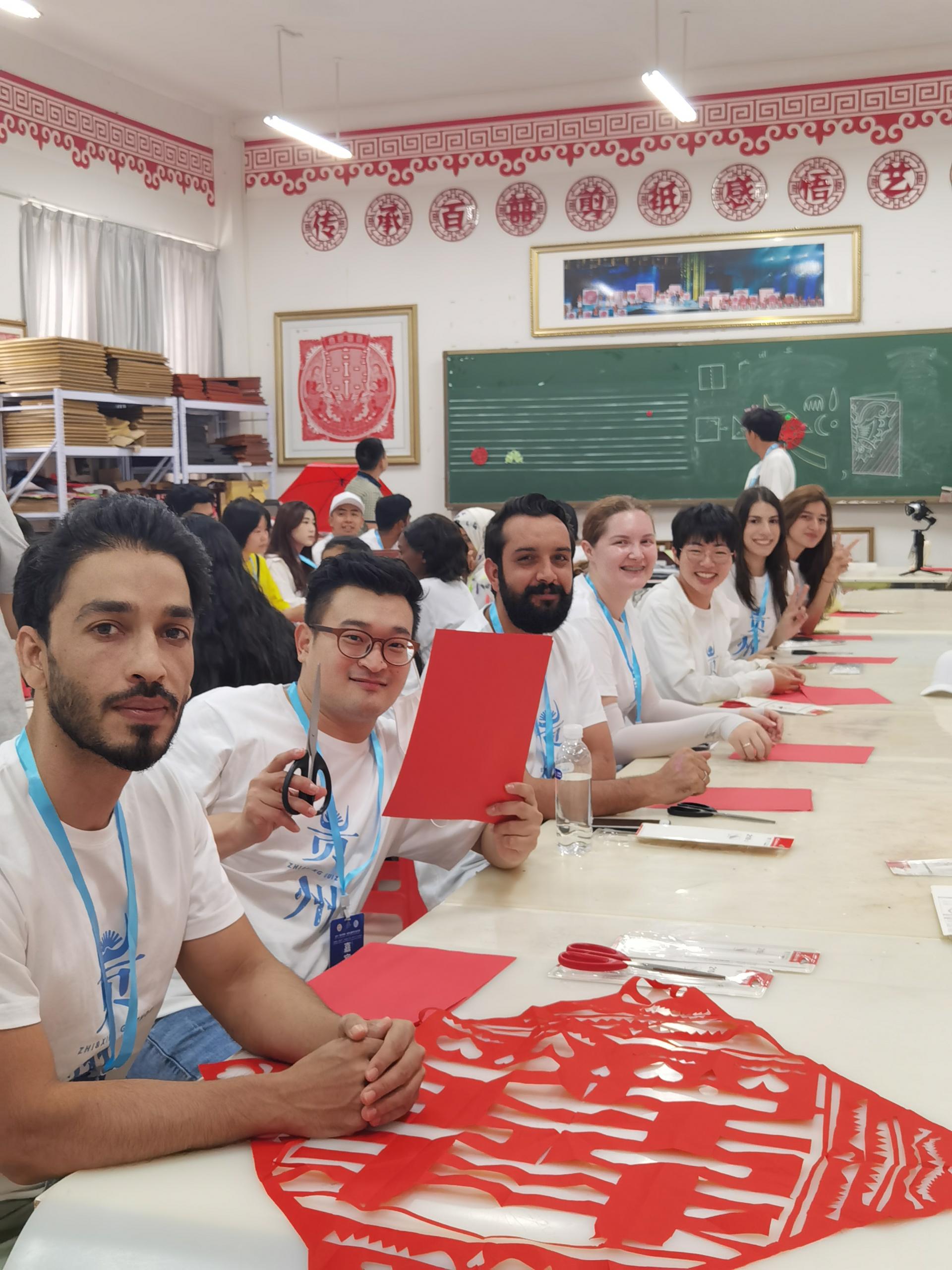 在为期一周的交流中,通过专家讲座、文化体验、文化交流展演等丰富多样的活动,国际学生们领略了贵州的秀美山川和多元民族风情,增进了对贵州的了解与认知,并进一步感知中国日新月异的变化。在此次活动中,国际学生们将“读万卷书,行万里路”有机结合,知行合一,格物致知。我校10名国际学生体验了铜仁幼儿师范高等专科学校与贵州健康职业学院精心准备的丰富且有趣的文化遗产体验课程,如手工剪纸、中华武龙、龙舟竞渡、中国茶艺、玉屏箫笛、土家摆手舞、太极拳、古筝演奏、国画、书法、象棋,也学习和实践了中医相关知识,如中药调剂抓取、中药香囊制作、理疗、拔火罐、针灸等。课程之外,我校国际学生实地观摩万山九丰农业博览园、朱砂古镇、朱砂矿洞、朱砂古镇之悬崖栈道、中国土家第一村、中南门古城和梵净山,切实体会到黔东深厚的文化底蕴。