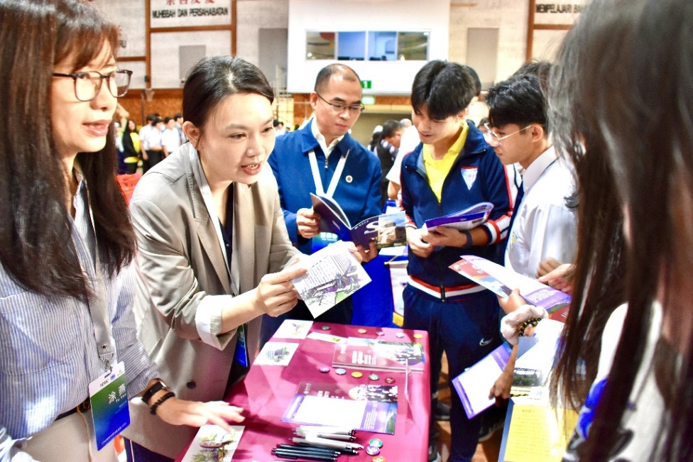活动仪式上,深圳大学国际交流学院院长潘燕春代表深圳大学向文莱中华中学校长许月兰赠送了纪念品。各嘉宾与老师和同学们前往国内高校展台参观、了解情况,并进行友好交流。