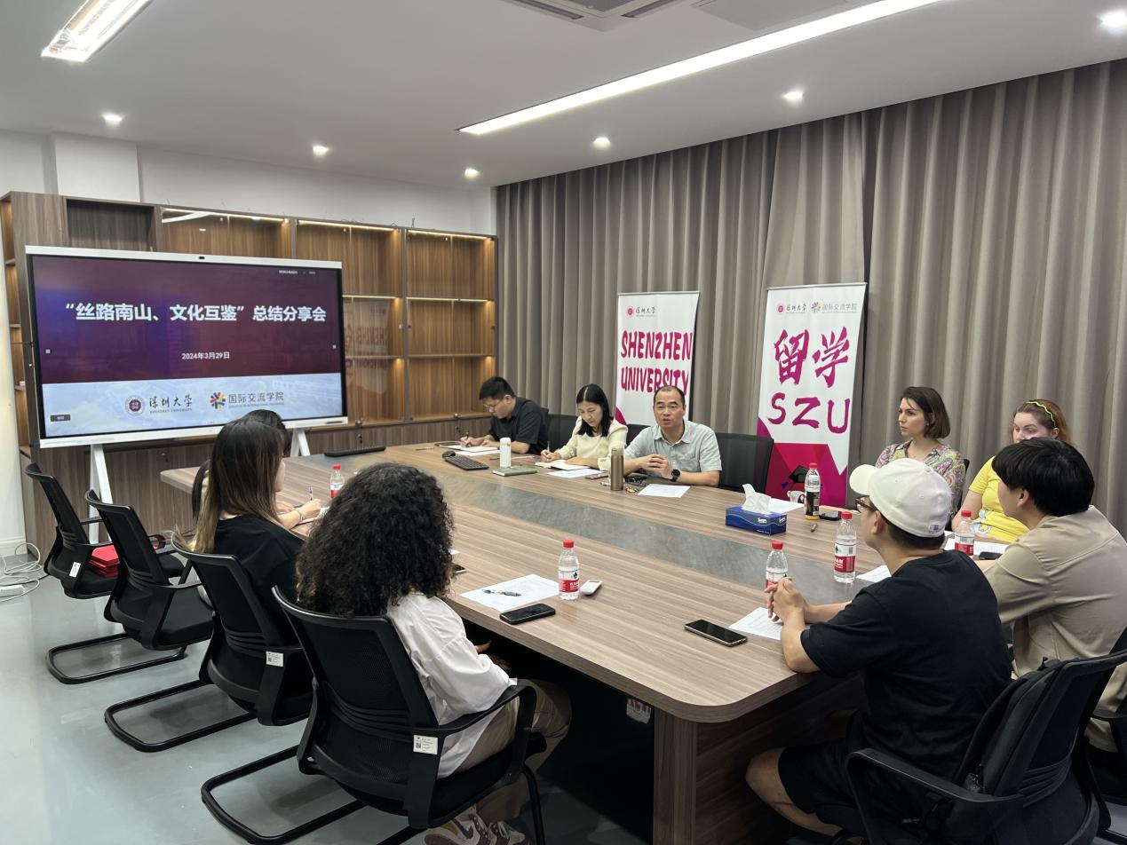 2024年3月29日,“丝路南山,文化互鉴”第一批留学生总结分享会在朝夕楼204会议室顺利召开。国际交流学院潘燕春院长、秦晴副书记、刘威老师、张倩婷老师及7位参与“丝路南山,文化互鉴”授课的留学生代表参与此次分享会。