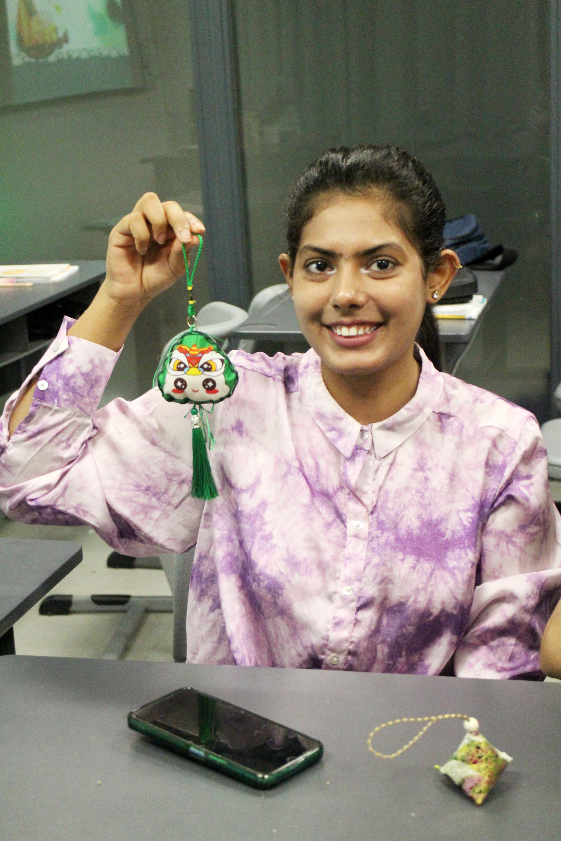 国际交流学院的老师在课堂上也带领学生开展了端午节主题班级活动。老师悉心为国际学生准备了制作香囊、五彩绳等物件的基础材料,并精心准备了教学课件引导学生们亲自动手制作。穿针、引线,在丝缕穿插之间,学生们与中华文化便产生了实质的勾连。通过动手缝制香囊、编制和佩戴五彩绳,学生在亲身实践的过程中更加深刻地体会了端午节的文化韵味。