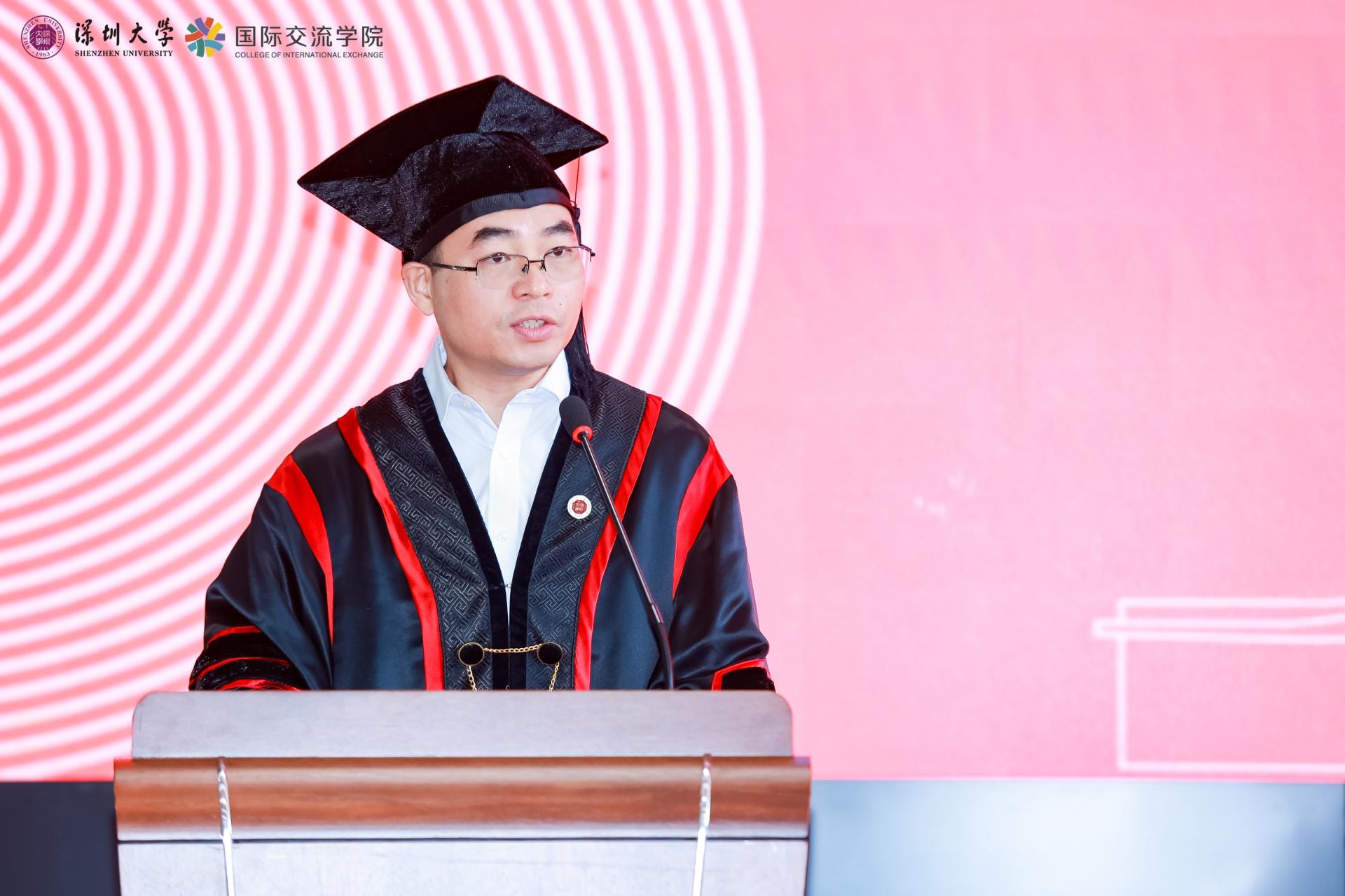 出席本次典礼的领导和嘉宾有国际交流学院院长潘燕春、副院长区莹、副院长郑捷、副书记秦晴,系主任、学历生毕业班班主任、语言生班主任,学院教师代表,以及全体学历毕业生、语言生和亲友。典礼由学院2024届毕业生家辉和茉莉主持。