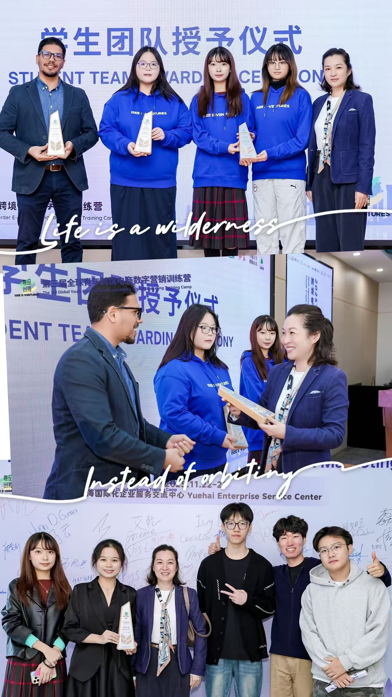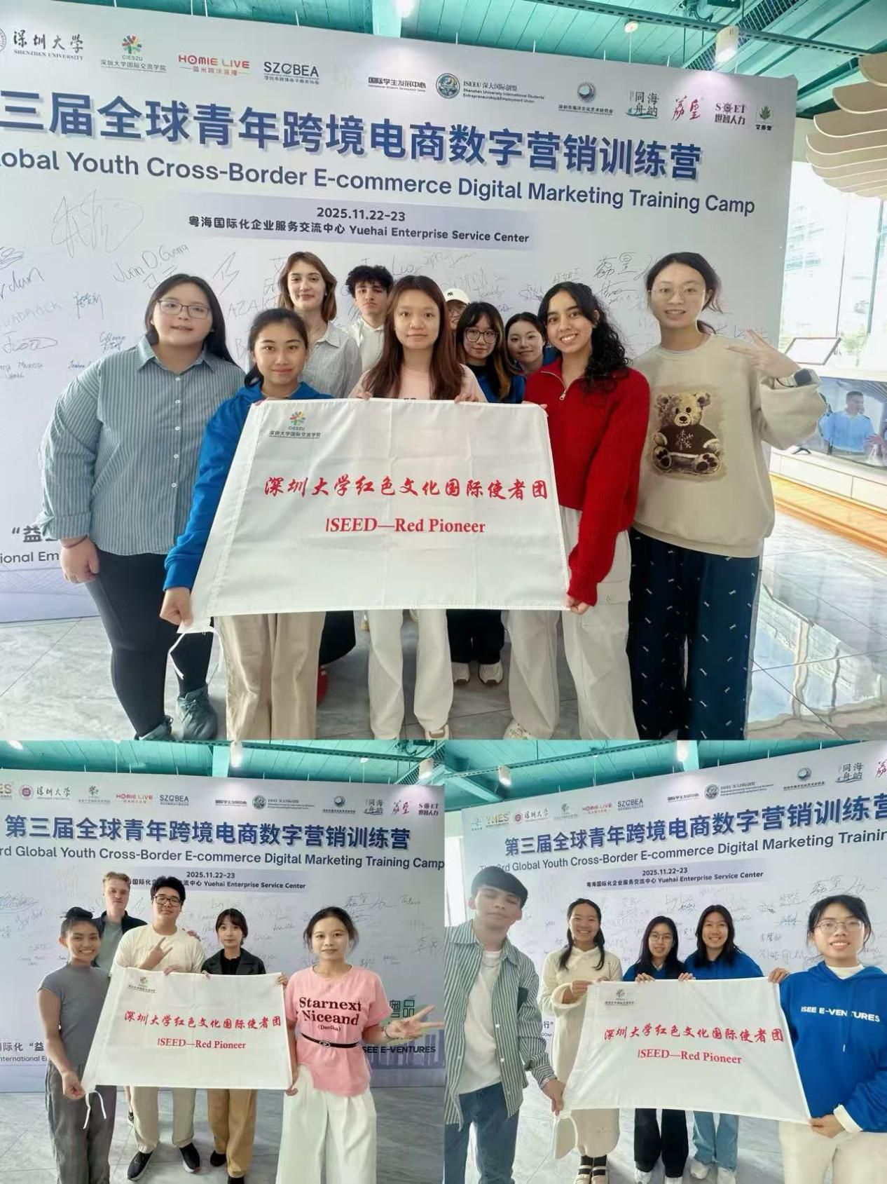 在新时代文化强国建设浪潮中,深圳大学红色文化使者团(ISEE-RED Pioneer)以创新实践交出一份亮眼答卷。11月22日,该团队于第三届“ISEE E-Ventures 粤品出海”全球青年跨境电商数字营销训练营开幕仪式上,与粤海国际志愿者团队、深大国际创盟(ISEEU)共同荣获深圳市南山区粤海街道授予的“创新先锋”称号。此次训练营由粤海街道办事处联合深圳大学国际交流学院主办,汇聚小米科技、TikTok、亚马逊等十余家跨境龙头企业代表,以及来自深圳大学、哈尔滨工业大学(深圳)、美国俄亥俄州立大学等海内外高校的近百名青年学子,标志着“政府搭台、高校育才、行业赋能、企业实战”的四维联动模式取得突破性进展。