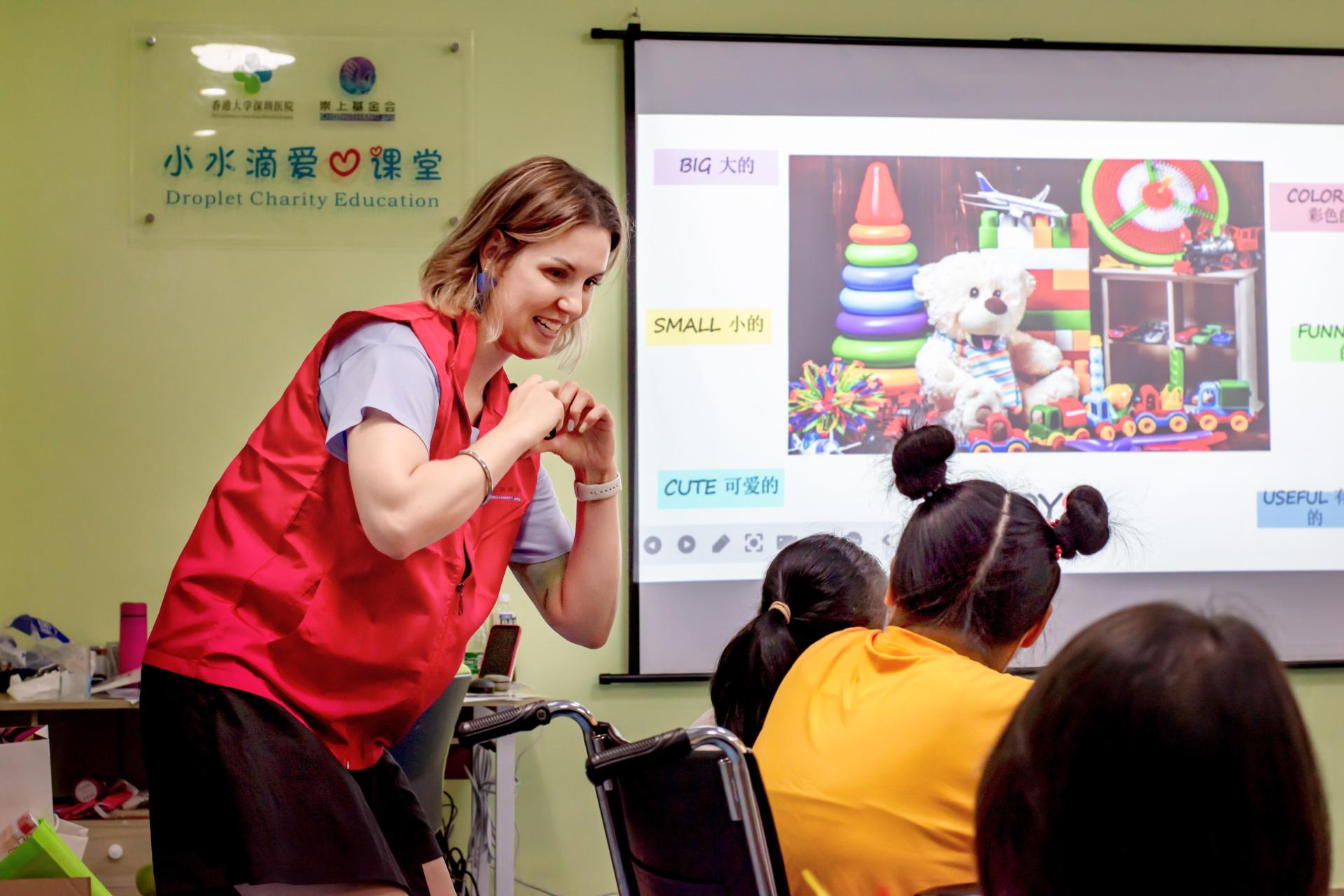 芭芭拉老师作为“小水滴爱心课堂”的老朋友,她的课堂组织有序、教学口令清晰、情景创设独特,充分考虑每一位孩子的水平,运用很多有趣的方式让孩子们层层深入,逐步感知并学以致用。真正做到寓教于乐,让每个孩子有机会开口说英语,她的口语交际课程多年来深受好评,让大家非常叹服。