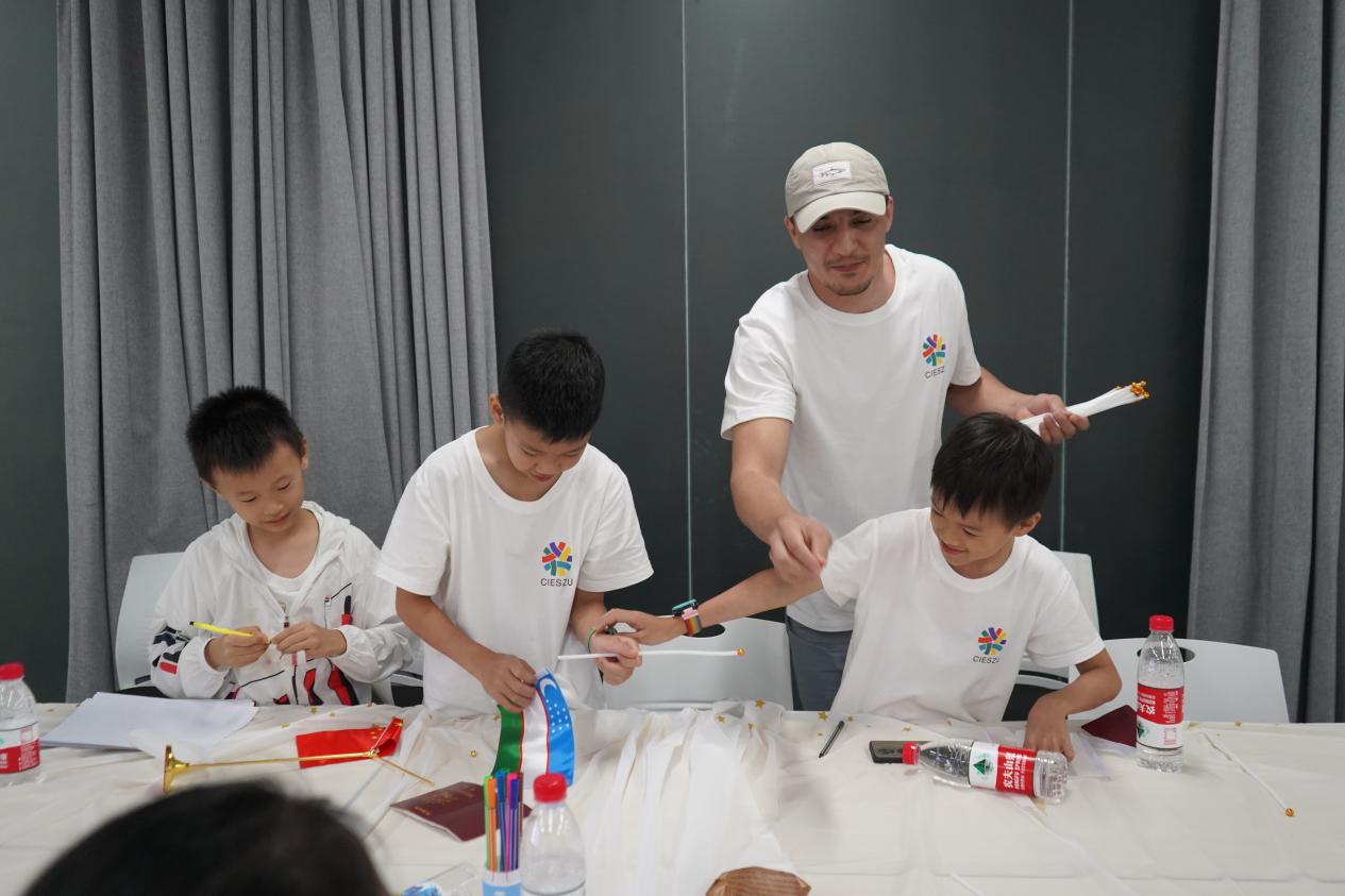 当撒马尔罕、布哈拉、还有各类乌兹别克斯坦传统美食呈现在小朋友眼前时,大家都非常惊喜。乌兹别克斯坦的湖山老师(PULATOV KHUSAN)准备了许多纯白的小国旗,小朋友们在国旗上绘制中乌友谊,绘制世界大地图,十分开心。