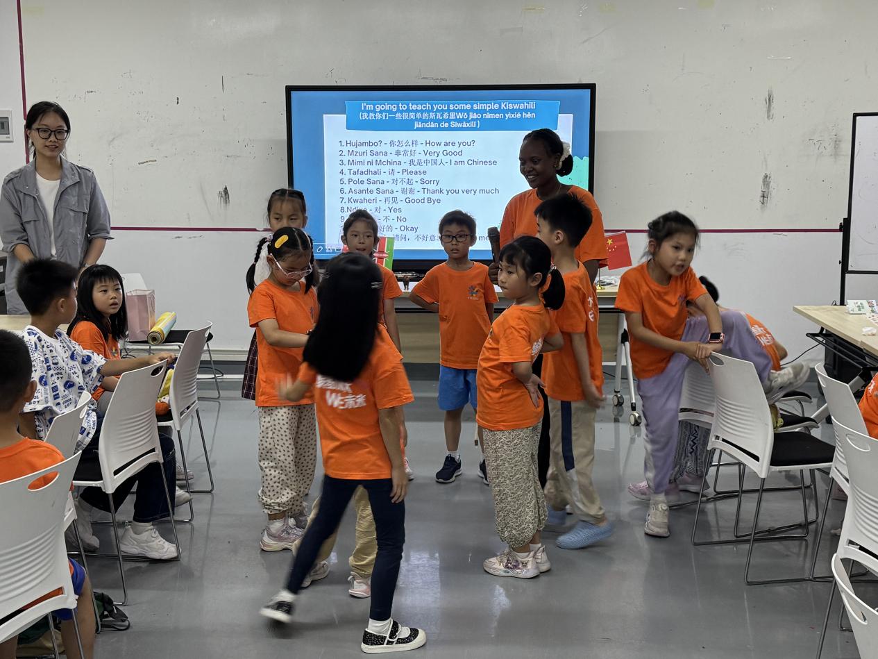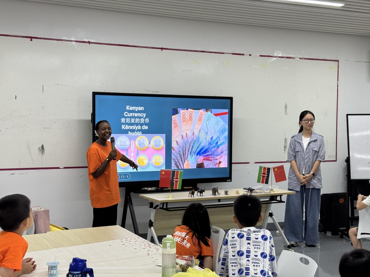 肯尼亚留学生林冉(NYAWIRA EVALYNE NJERI)带来的是一场视觉与知识的盛宴。非洲大草原上威风凛凛的狮子、温顺的长颈鹿、憨态可掬的大象……高清图片和生动的讲解,让孩子们仿佛置身于马赛马拉。惊叹声此起彼伏,对自然和生命的敬畏油然而生。