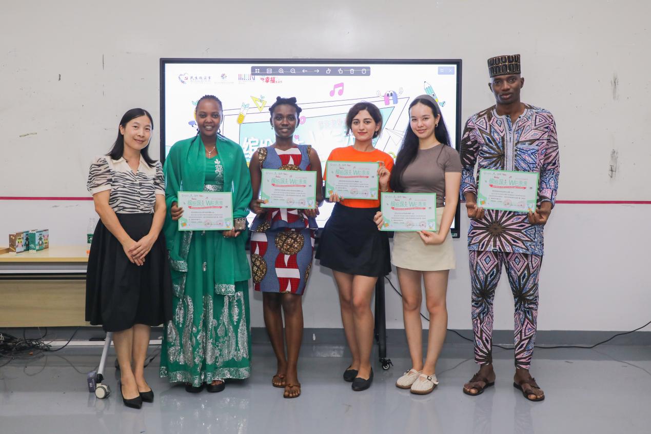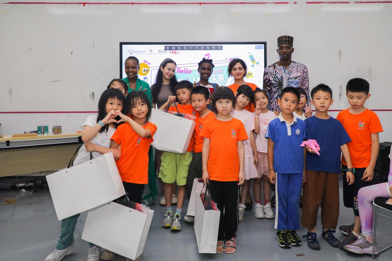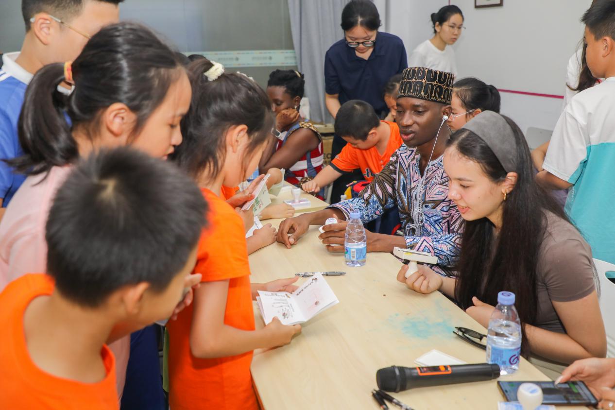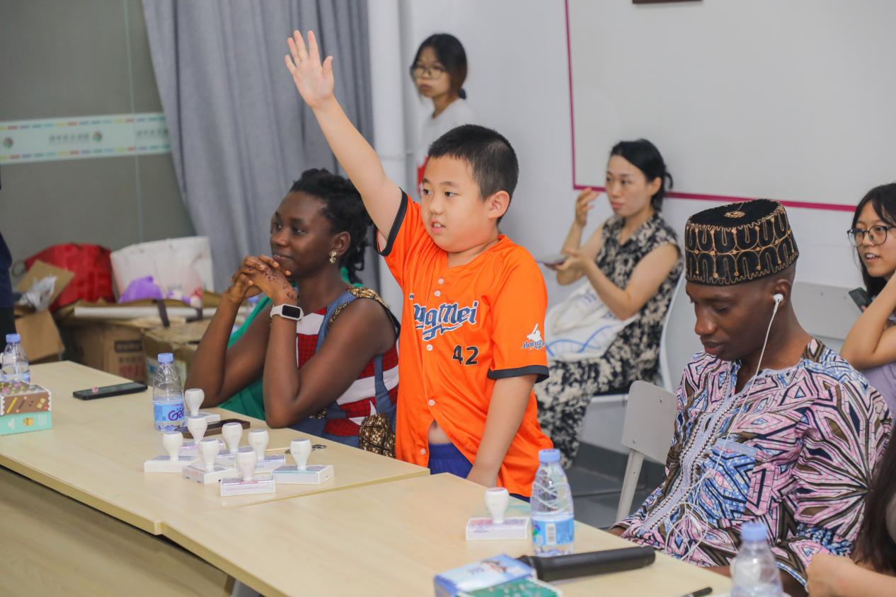 闭营仪式上,所有留学生齐聚一堂,孩子们可以自由穿梭其间,用稚嫩但充满热情的中英文提出他们心中无数个“为什么”。问风俗、聊美食、说节日……这场零距离的“圆桌交流会”充满了童言童语的妙趣和真诚的互动,瞬间消融了国籍与语言的隔阂。留学生们耐心解答,分享着个人故事,这一刻,“人类命运共同体”在童真的目光中找到了最温暖的注脚。