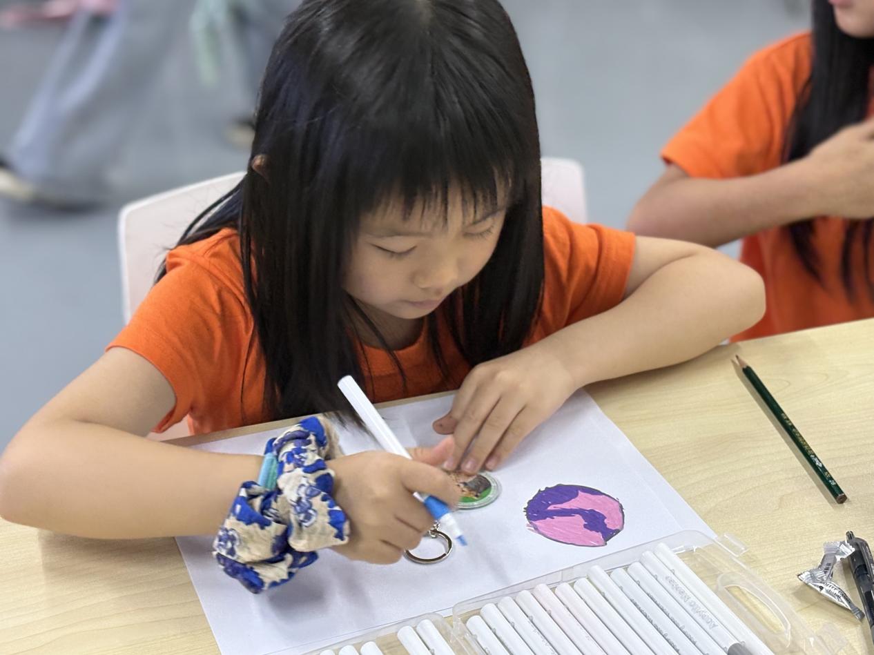树叶、硬币、各种肌理的小物品,在按压、涂色中拓印出千变万化的图案。古老技艺的新生让孩子们体验到创造的偶然之美与自然的肌理痕迹。