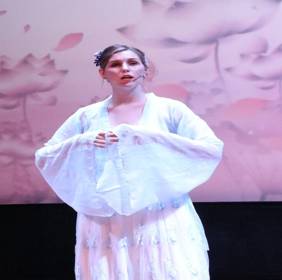 留学生丽娜(乌克兰)与中国助演吴彤表演开场舞《诗经·桃夭》