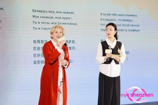 随后,交流会的“重头戏”以诗意微纪录片作为串场,伴随着舒缓浪漫的音乐,由现场5位外国友人分别用意大利语、法语、俄语、阿拉伯语和英语,以“青春”“创新”“家园”“梦想”和“未来”为主题,与他们的中国朋友一起,诵读一首当地的经典诗文。活动最后,大家一同走上舞台,共读一首专为深圳创作的诗《徜徉深圳》。