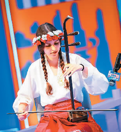 音乐作为一种无国界语言,也是选手们故事灵感的来源。出于对中国传统名曲《赛马》的喜爱,来自波兰的刘艾琳不惧挑战,选择学习中国传统乐器二胡。在比赛现场,她跟大家分享了在中国留学期间学习二胡的经历。