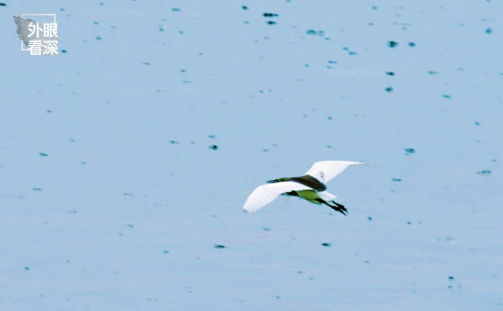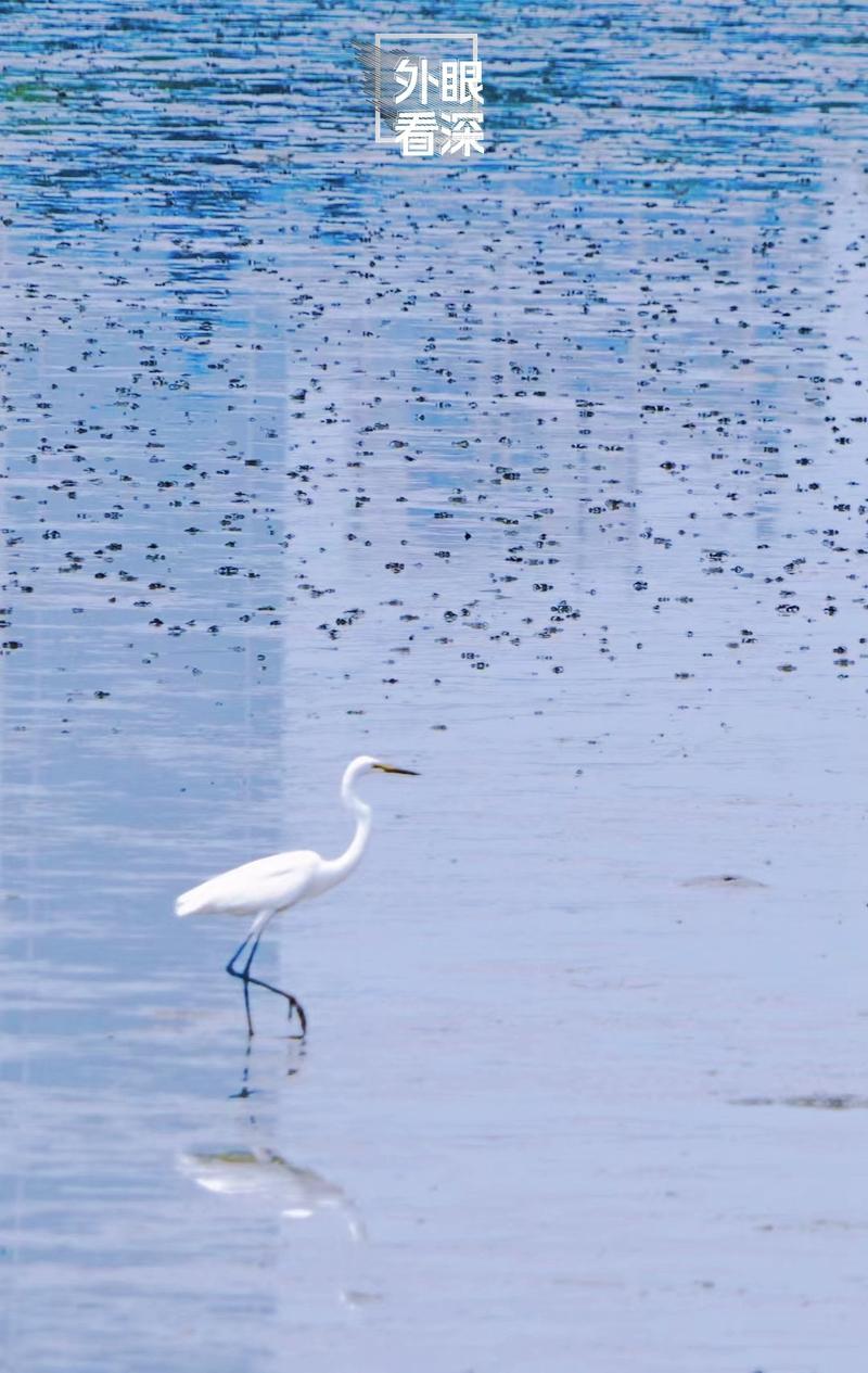 细长的脖子和脚,画出深圳湾优美的“音符”。