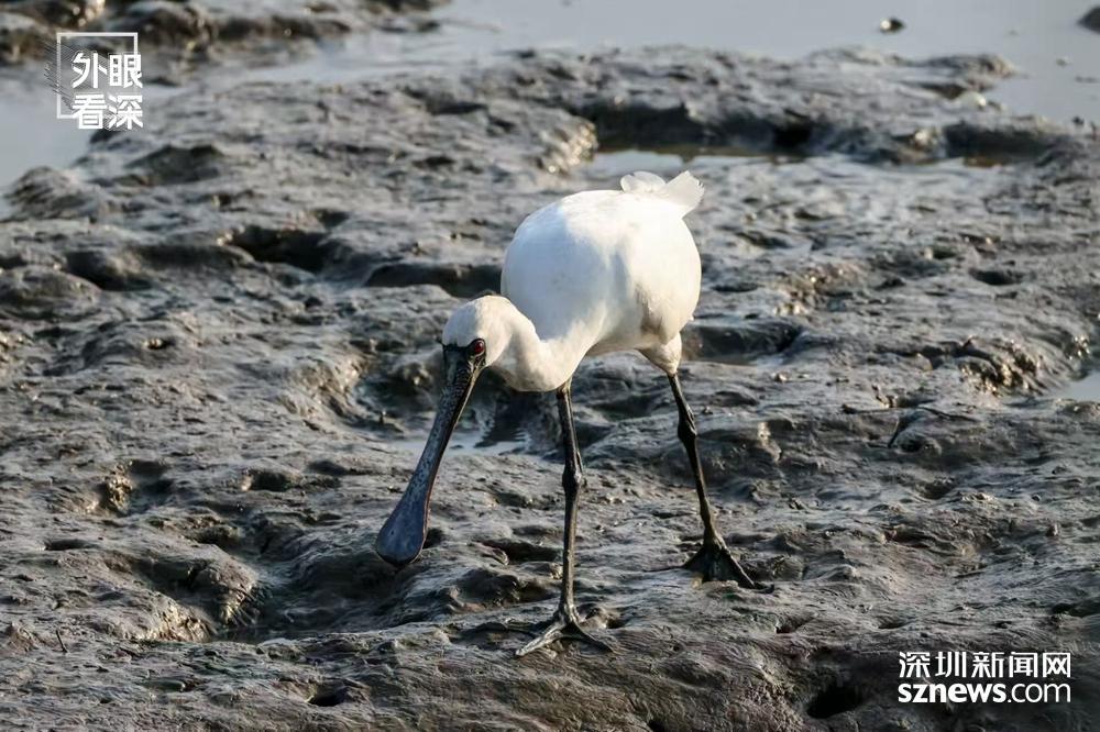 Most of the migratory birds displayed in the nature reserve have also been photographed by Yao Xiaoming. He told Feifei that his favorite migratory bird to photograph was the black-faced spoonbill (Shenzhen bird), whose beak resembled the Chinese musical instrument pipa and whose slow walk was like an elegant beauty. Fortunately, Feifei also photographed the black-faced spoonbill foraging with a telephoto lens.