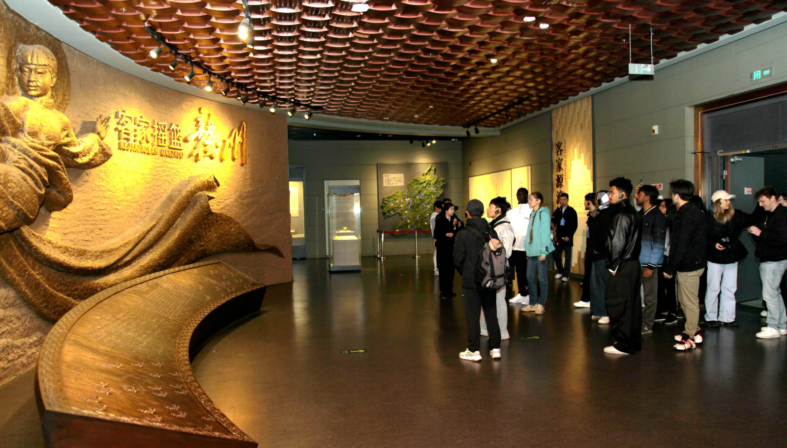 在赣州市博物馆,留学生们走进客家摇篮赣州展厅,系统了解赣州城市的发展和客家的南迁。马来西亚留学生李宇棋对着“迁徙地图”仔细寻找祖辈的足迹:“原来我的根脉与这片土地如此紧密相连。” 移步赣州市文化艺术中心的非遗体验,大家在赣南客家擂茶、赣南客家剪纸非遗传承人老师的带领下,体验擂茶的制作,当法国姑娘安娜蕾成功剪出“喜鹊”窗花时,现场爆发出热烈的掌声,不同肤色的笑脸在非遗技艺中绽放。