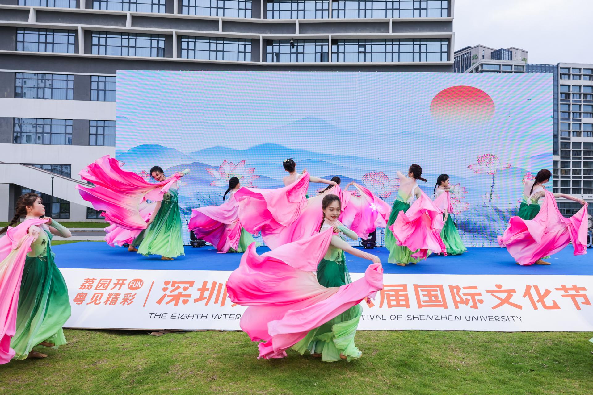 除了精彩纷呈的摊位,来自澳门城市大学、哈尔滨工业大学(深圳)、华南理工大学、广东外语外贸大学、华南师范大学、文理实验学校(集团)科创学校、深圳大学等七所粤港澳大湾区高校、中学的中外学生动情演绎各国传统民族文化特色的歌曲与舞蹈。深圳大学国际合唱团原创歌曲《东方之梦》传递出对中国的热爱与祝福,彰显了音乐跨越国界的力量。澳门城市大学艺术团的原创舞蹈《游塘忆莲》以荷花为灵感,融合澳门历史文化元素,展现了澳门从历史沧桑走向繁荣发展的历程。二十余位来自世界各国国际学生,身着各国传统服饰的留学生们款款而行,通过服装展示各国的文化特色与历史传承。演出现场热闹非凡,不时爆发阵阵喝彩与掌声。