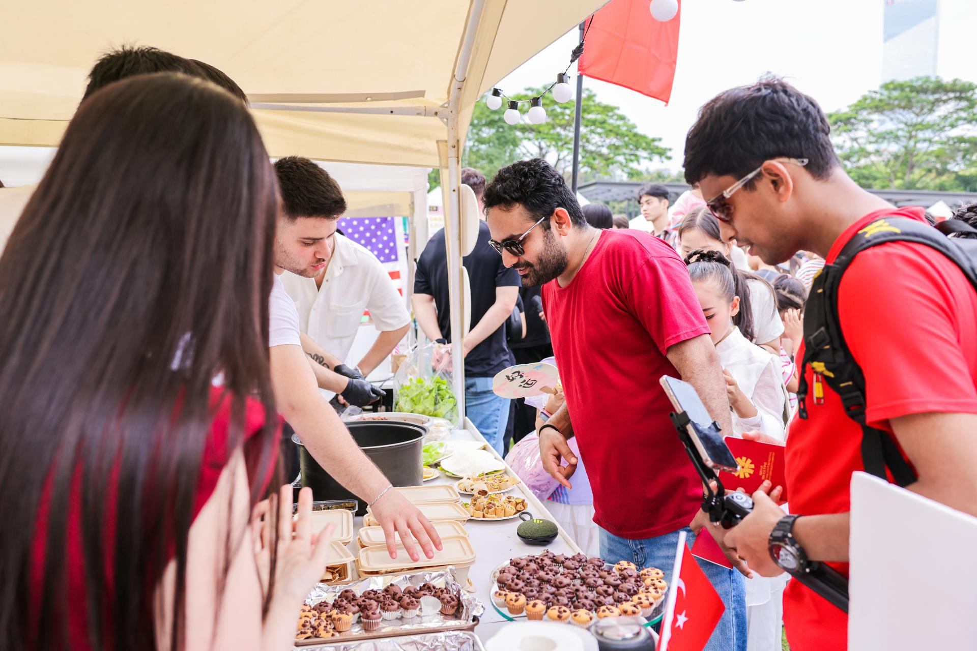 传播学院博一留学生、来自埃塞俄比亚的beti在摊位内不断忙碌着,招呼大家品尝特色咖啡和传统佐咖小食:“这次活动让我们有机会宣传我们的语言和文化并认识了很多新朋友!”在巴基斯坦摊位,金黄香浓的手抓饭和醇厚甘甜的奶茶吸引了不少师生和市民驻足品尝,物理与光电工程学院博士留学生Qaisar(方尧)说:“希望人们通过味蕾感受巴基斯坦文化的热情与独特魅力。”埃及摊位成为人气超高的“打卡点”,来身着法老服装的留学生omair现场为大家制作埃及特色美食,展示金字塔、狮身人面像摆件:“很多人来跟我合照,我也很开心能把我家乡的美食和文化与大家分享!”