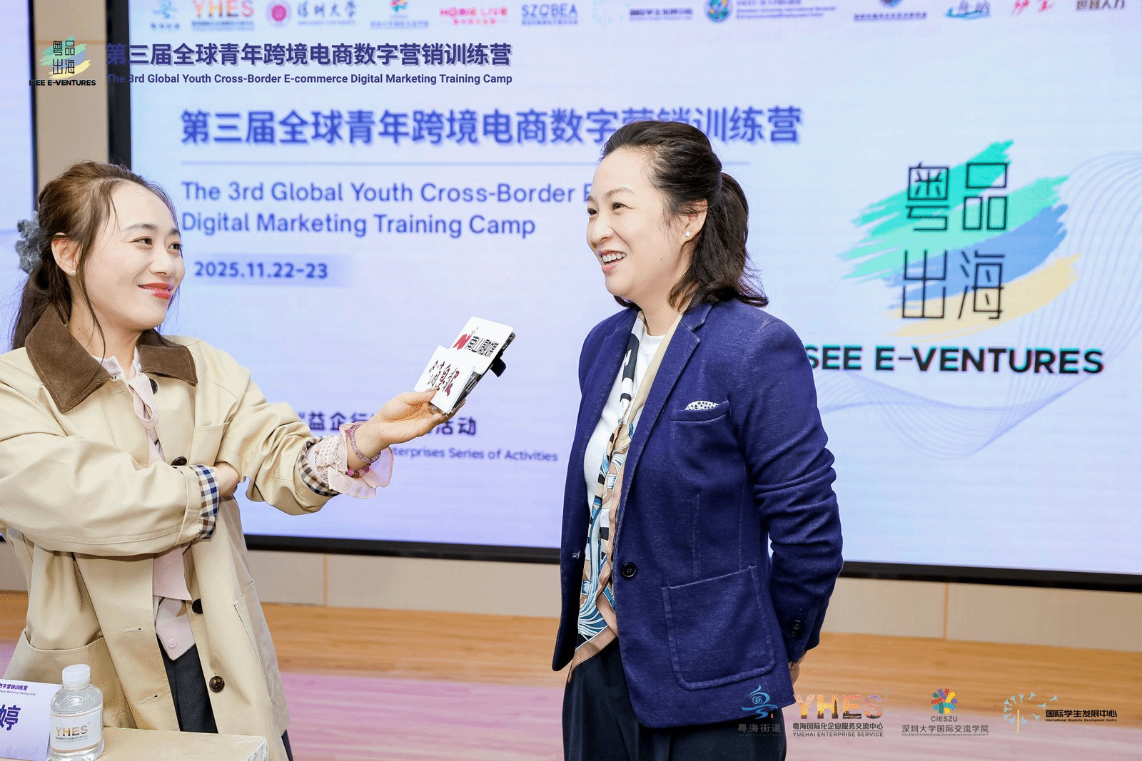 项目发起人、深圳大学国际学生发展中心主任陈默指出,训练营正着力构建“资源可触达、成长可量化、成果可转化”的培育生态。她特别介绍了“ISEE E-Ventures粤品出海”官方网站作为本届活动的新亮点,通过整合“学员风采”、“导师智库”、“企业库”、“项目动态”等核心模块,打造集人才培养、成果展示、资源对接、信息聚合于一体的数字化平台。该平台将持续更新项目进展与企业合作成果,扩大社会影响力,未来将吸引更多全球青年和产业资源加入,推动“粤品出海”从活动品牌升级为可持续的跨境电商生态平台,持续提升其国际化辐射力与行业标杆价值。